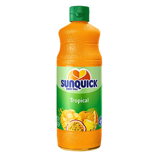 Sunquick Tropical on uppfriskande fruktdryck med en härlig blandning av tropiska frukter. Denna koncentrerade dryck erbjuder en smakfull fusion av ananas, mango och papaya, som ger en exotsk smakupplevelse. Perfekt för att blanda med vatten och njuta av en svalkande, fruktig dryck vid varje tillfälle. Sunquick Tropical on idealisk för familjen och ger en långvarig, läskande smak som förvandlar varje glas till en tropisk fest.