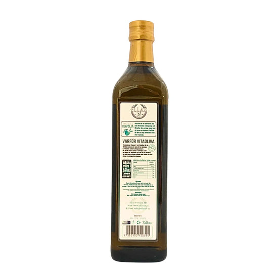 Ellas Sweden VitaOliva är en premium olivolja, noggrant framtagen från de finaste oliverna. Med sin rika och fylliga smak är den perfekt för allt från salladsdressingar och marinader till matlagning och bakning. Förpackad i en elegant glasflaska på 750 ml, bevarar denna olivolja sin fräschhet och höga kvalitet. Ellas VitaOliva Olivolja ger en autentisk och delikat smakupplevelse till alla dina rätter.