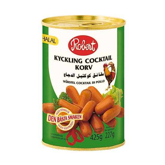 Robert Kyckling Cocktail Mild 425g är en läcker kombination av färdigkokta kycklingbitar i en mild och krämig cocktailsås. Varje bit är noggrant tillagad för att behålla sin saftighet och smak, vilket ger en perfekt balans mellan texturen i kycklingen och den krämiga såsen. Denna mångsidiga rätt är perfekt för snabba måltider eller som ett smakrikt inslag i sallader, wraps eller andra kreativa rätter. Tillverkad med högkvalitativa ingredienser och utan tillsatser, erbjuder Robert Kyckling Cocktail Mild en bekväm och god måltidslösning för alla tillfällen.