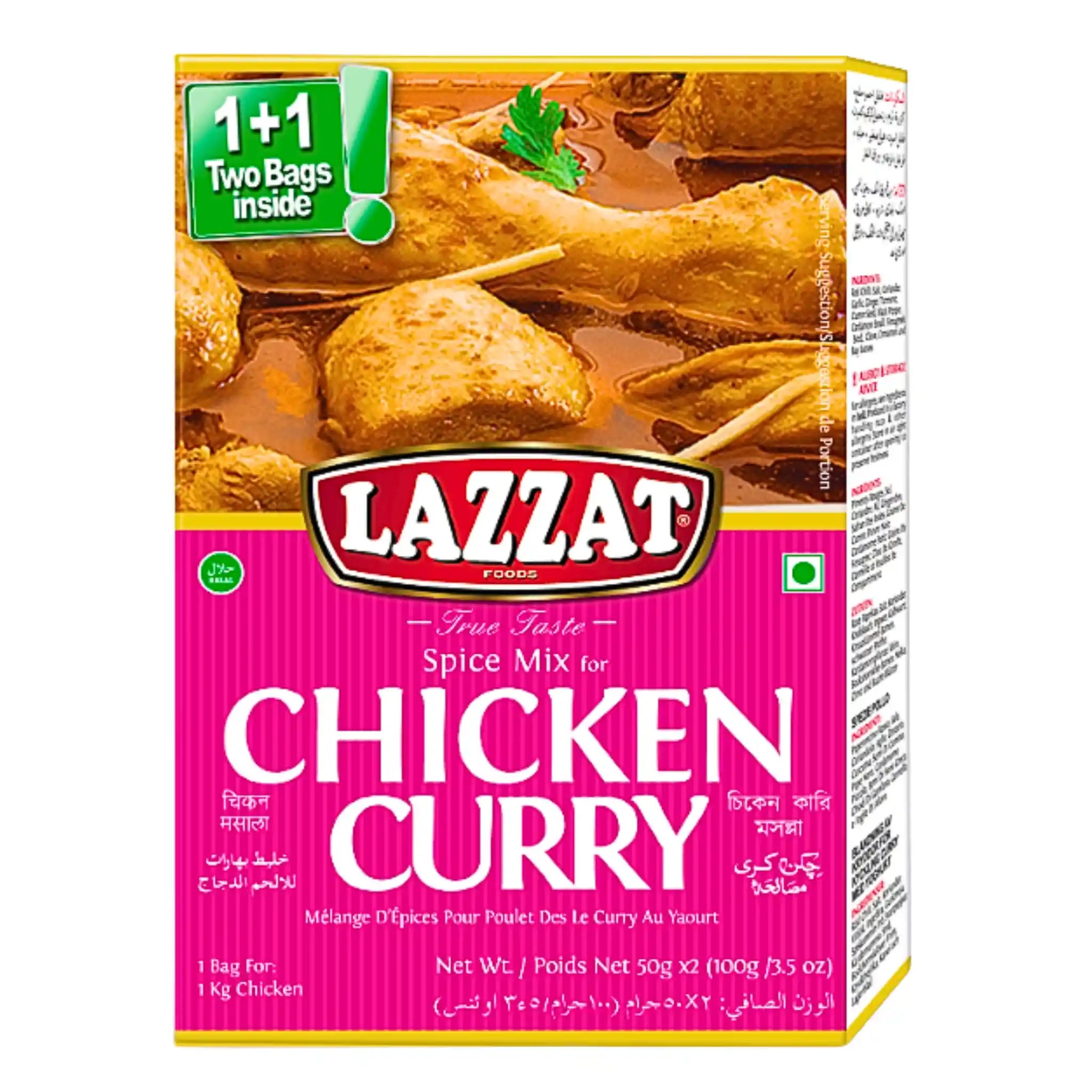 Lazzat Chicken Curry Masala on en kryddblandning designad för att ge en autentisk och smakfull kycklingcurry. Denna mix kombinerar en noggrant utvald blandning av kryddor som ger rätten en rik och kompleks smakprofil, med både hetta och värme. Perfekt för att skapa en fyllig och välsmakande curry med kyckling, den är enkel att använda – tillsätt bara kryddblandningen till kyckling och andra ingredienser för att få en autentisk curry. Förpackningen på 100g räcker till flera portioner och gör det lätt att laga en smakrik måltid hemma.