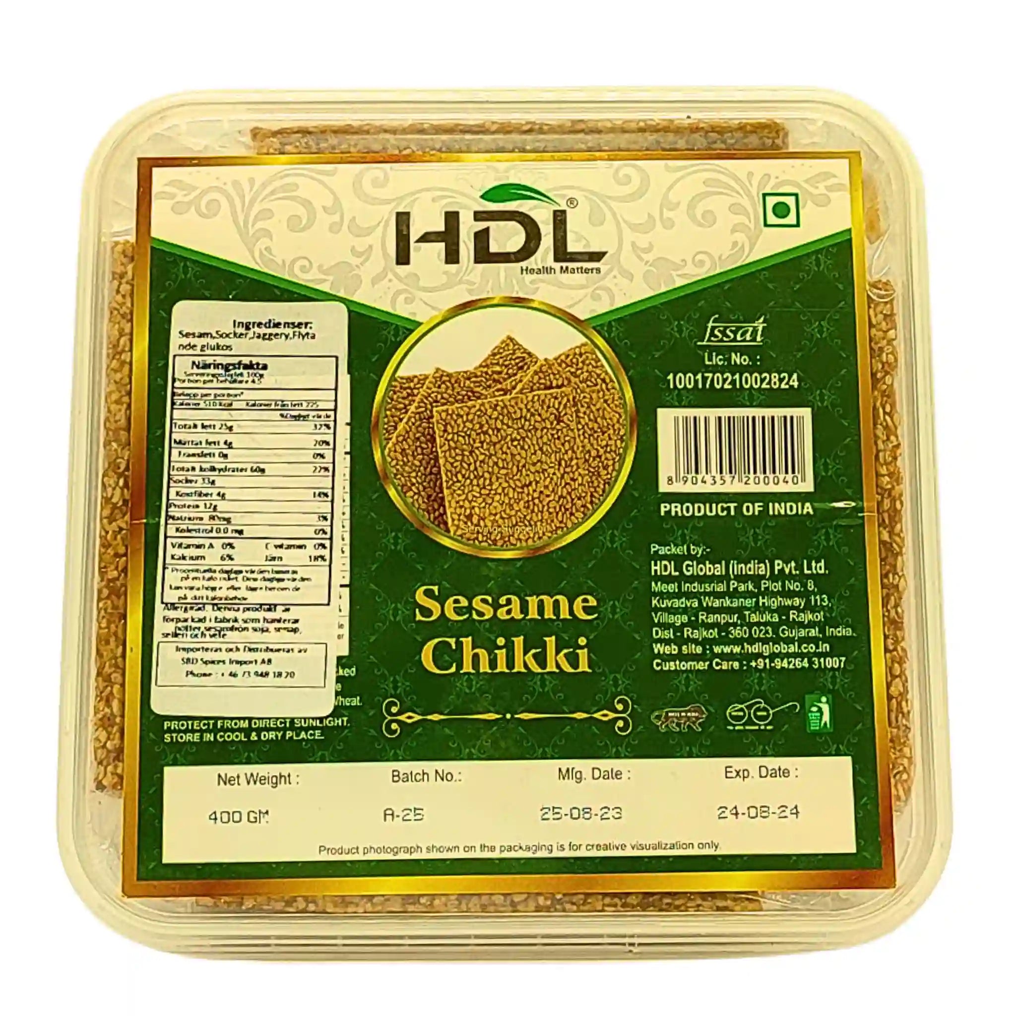 Seesami chikki 200g är en läcker indisk delikatess tillverkad av rostade sesamfrön och jaggery, perfekt för en söt och krispig smakupplevelse. Denna traditionella godisbit on rik på smak och ger en härlig kombination av sötma och nötighet. Perfekt som mellanmål eller som en del av festliga tillfällen, Sesame chikki är en uppskattad del av det indiska köket.